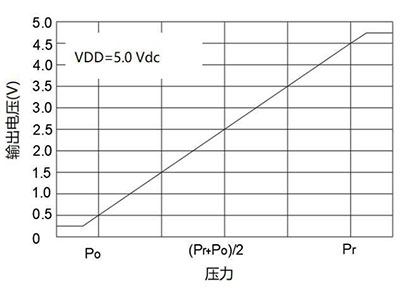 | UT=A×P B uppmärksamhet: OUT är den analoga utspänningen, mätt i volt; P är tryckvärdet, absolut tryck, i kPa; Se tabellen nedan för A och B. |
